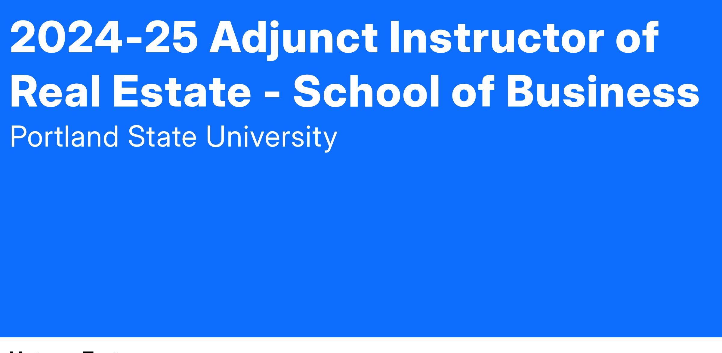 | Working Title | 2024-25 Adjunct Instructor of Real Estate - School of Business |