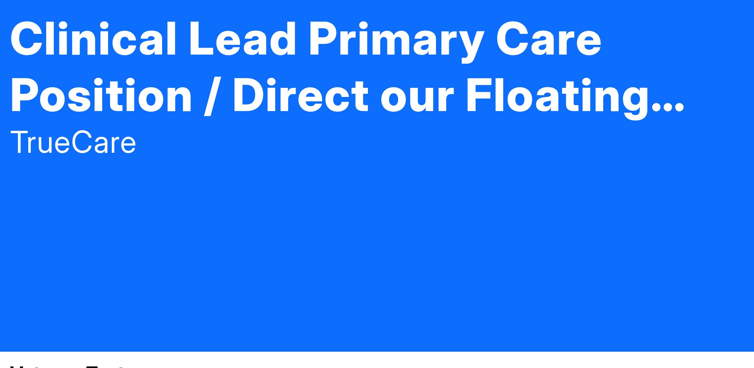 As a Lead Physician at TrueCare, you won’t just oversee care—you’ll elevate it. If you’re ready to lead with heart, inspire others, and transform patient lives, we’d love to hear from you!