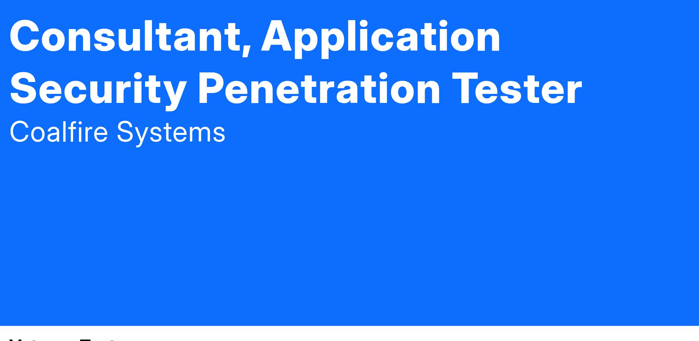 Coalfire’s AppSec team is composed of highly specialized application security testers. Not only are we hackers, but trusted advisors, where true consultancy shines through. At Coalfire, we take pride in being a partner to our clients. On our AppSec team, you work individually, but also in large groups depending on engagements. Come join our fun team where you can showcase your abilities, deepen your technical skills, expand your knowledge, be mentored while mentoring others, and have a great time while doing it.