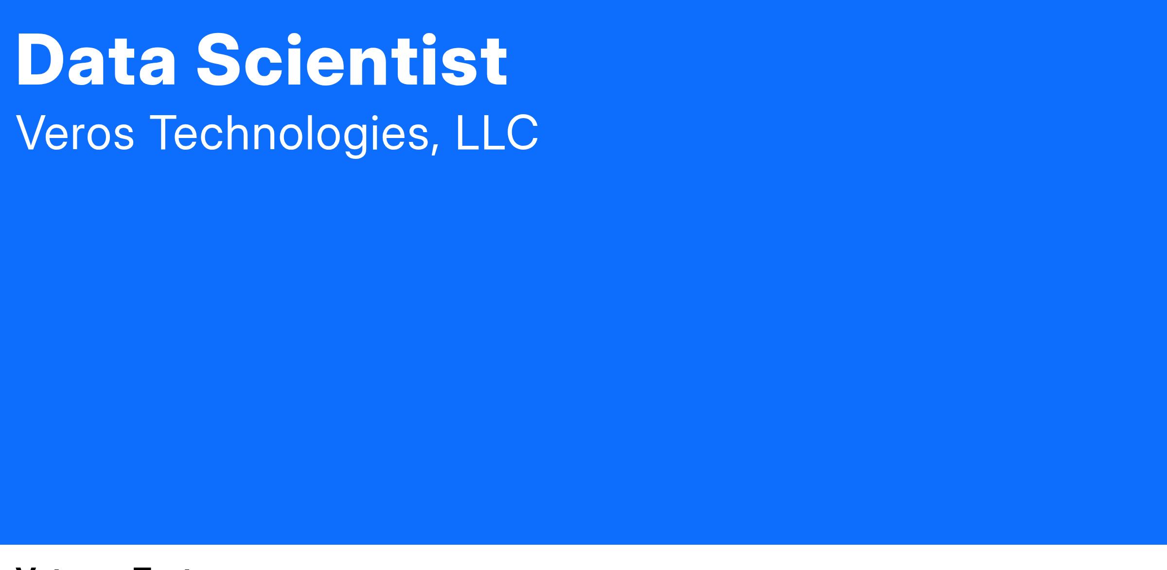 Veros delivers innovative cyber security, data analytics, operational engineering and technical operations consulting services to enable Intelligence Community programs and operations. In the Data Scientist role, you will work in a dynamic environment and leverage your experience using data and analytical ability to find and interpret rich data sources. Specific work location varies based on the position filled. Multiple vacancies may filled from this posting; consideration and placement level is dependent upon qualifications and contract vacancy requirements.