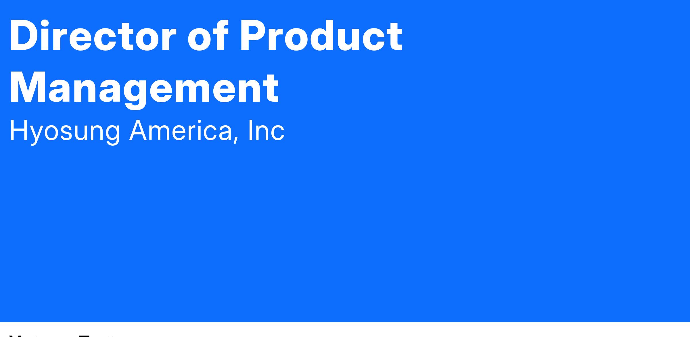 JOB SUMMARY:As a rapidly growing company, Hyosung relies heavily on product management based on solution’s understanding. The Director will have the ability to understand our product and how it is operating in the customer environment and will research actionable product solution plans that conform to customer needs and align with R&D development. The Director will work alongside the product management and marketing teams to conduct market research and analysis, create, and manage launches, develop compelling sales tools that drive demand, and identify and develop profitable partnerships.