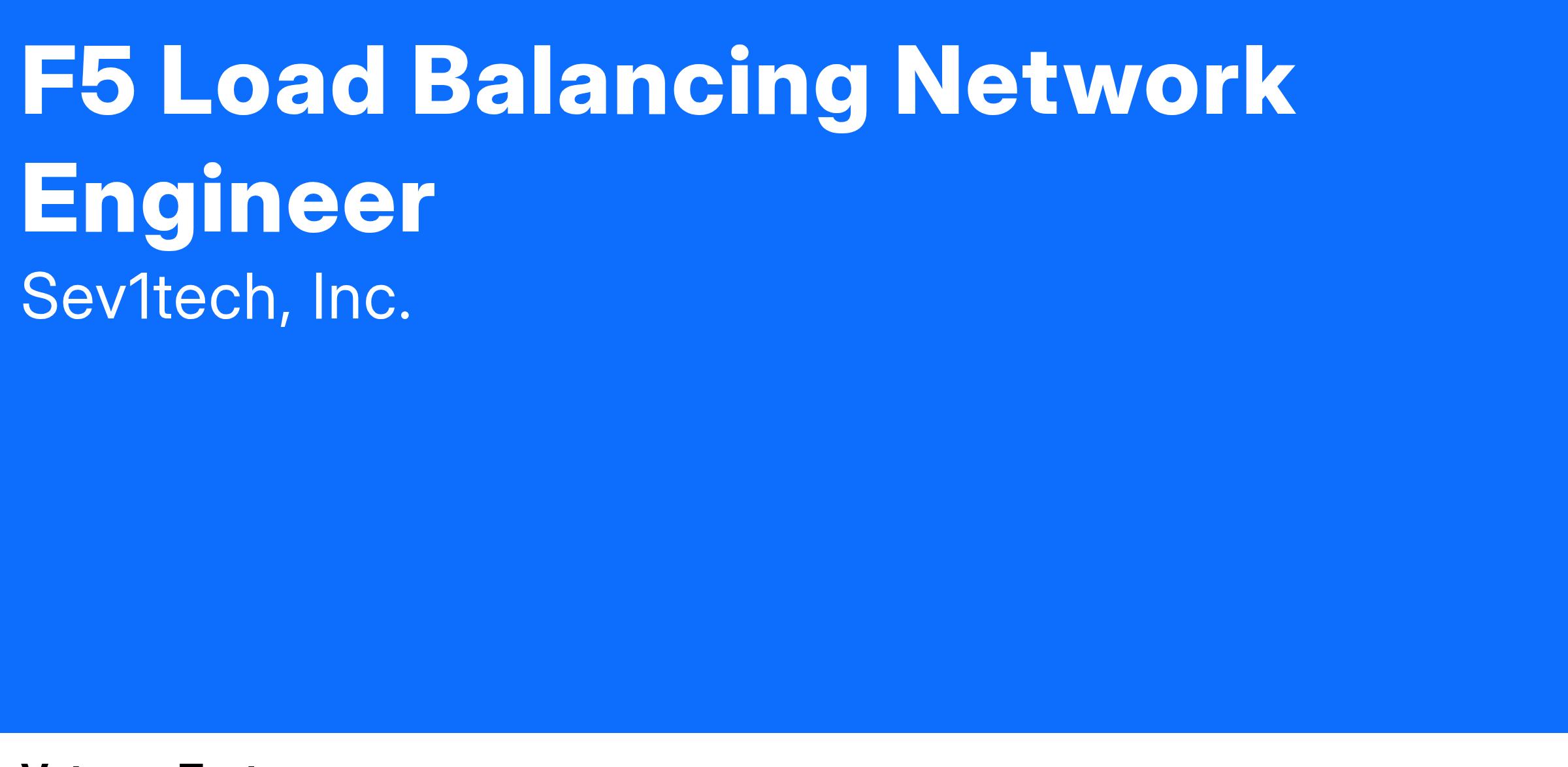 Sev1tech, Inc.F5 Load Balancing Network EngineerUS-VA-Remote