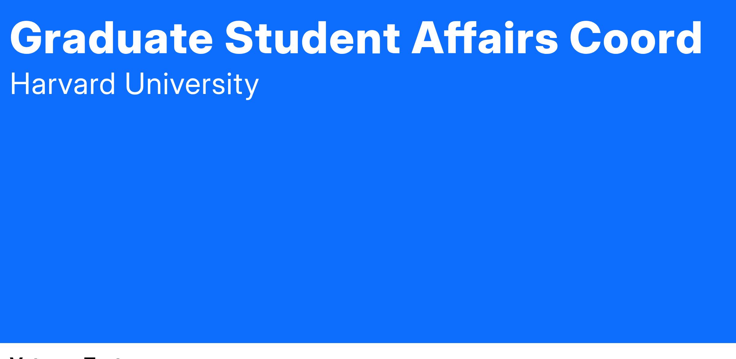Harvard UniversityPosition Title: Graduate Student Affairs Coord