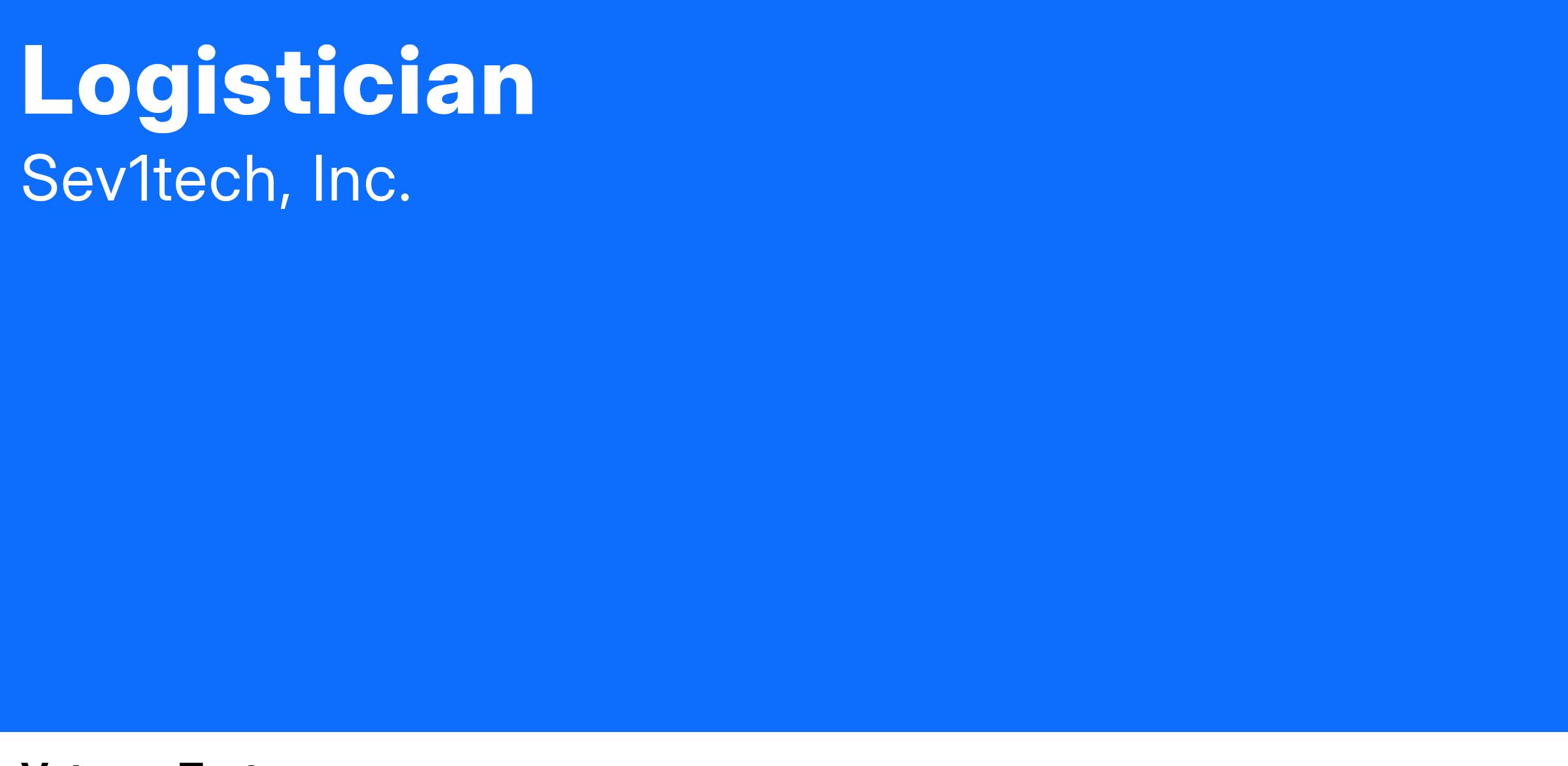OverviewSev1Tech is seeking an accomplished and strategic Logistician to join our team.