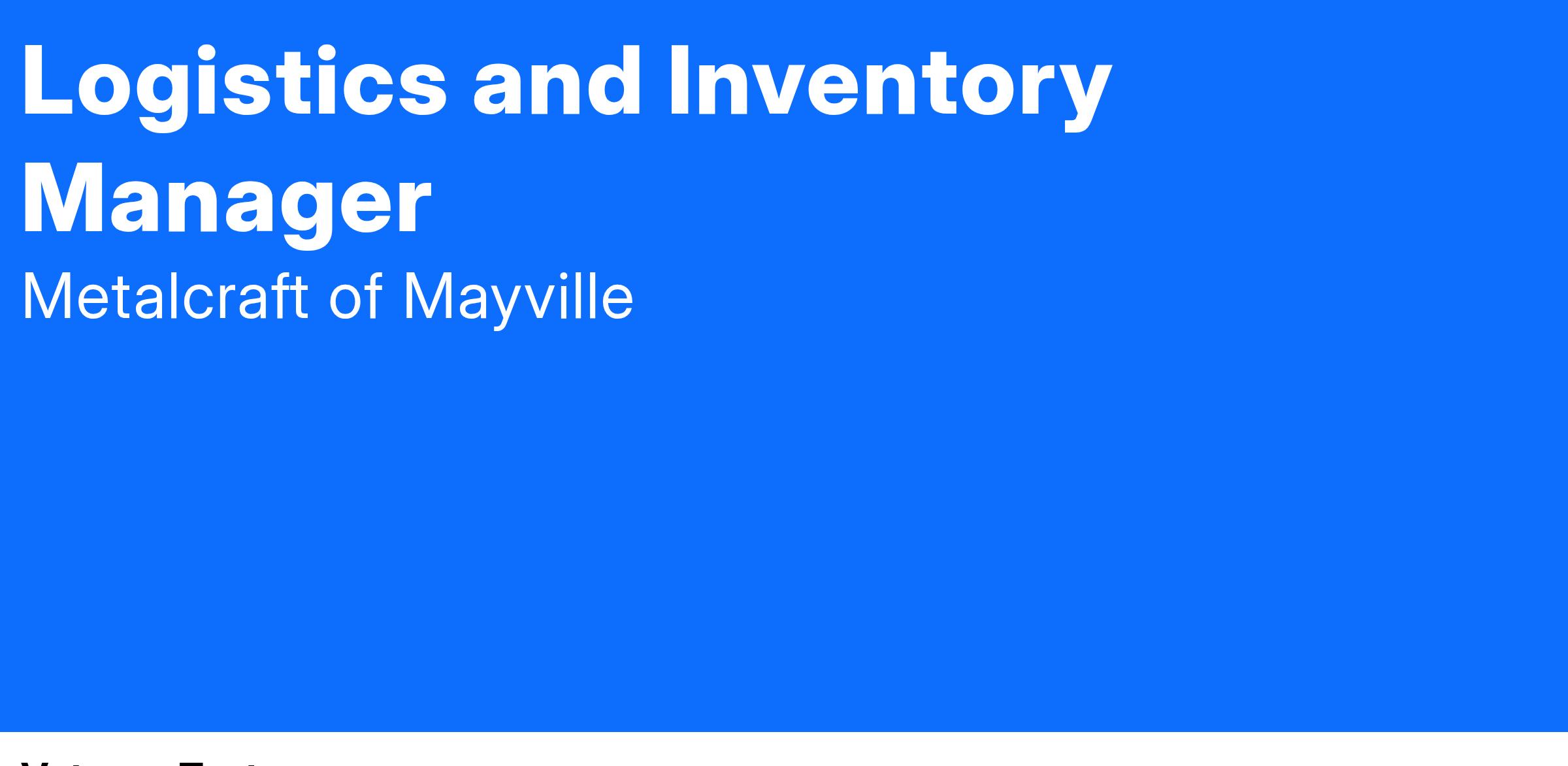Logistics and Inventory ManagerUS-WI-Mayville