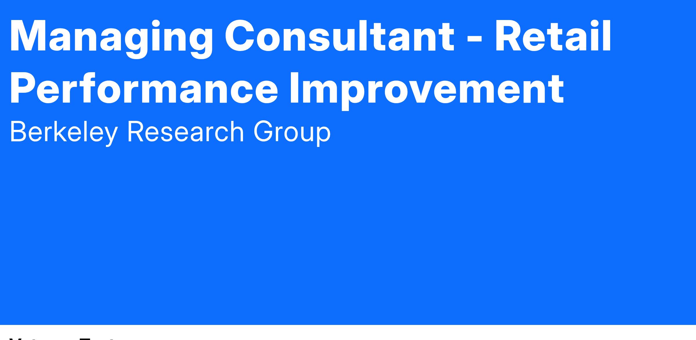 The position is in the Retail Performance Improvement practice, which provides strategic, operational and financial advisory services to high-performing growth-oriented retail and/or consumer product companies. The ideal candidate should excel working in a team environment, on a diverse range of fast-moving assignments, and in an entrepreneurial environment.