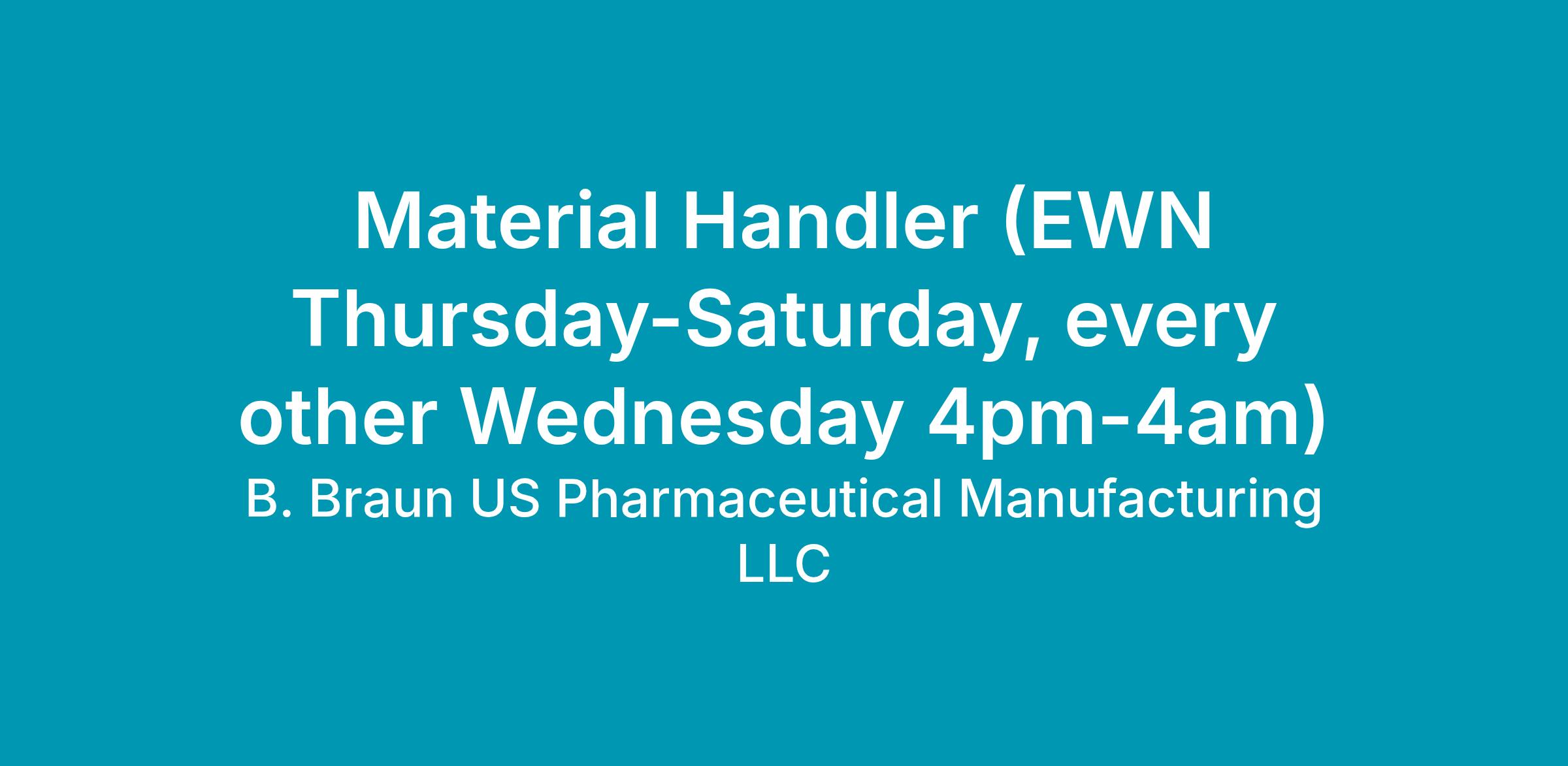 B. Braun offers an excellent benefits package, which includes healthcare, a 401(k) plan, and tuition reimbursement. To learn more about B. Braun and our safety healthcare products or view a listing of our employment opportunities, please visit us on the internet at www.bbraunusa.com.
