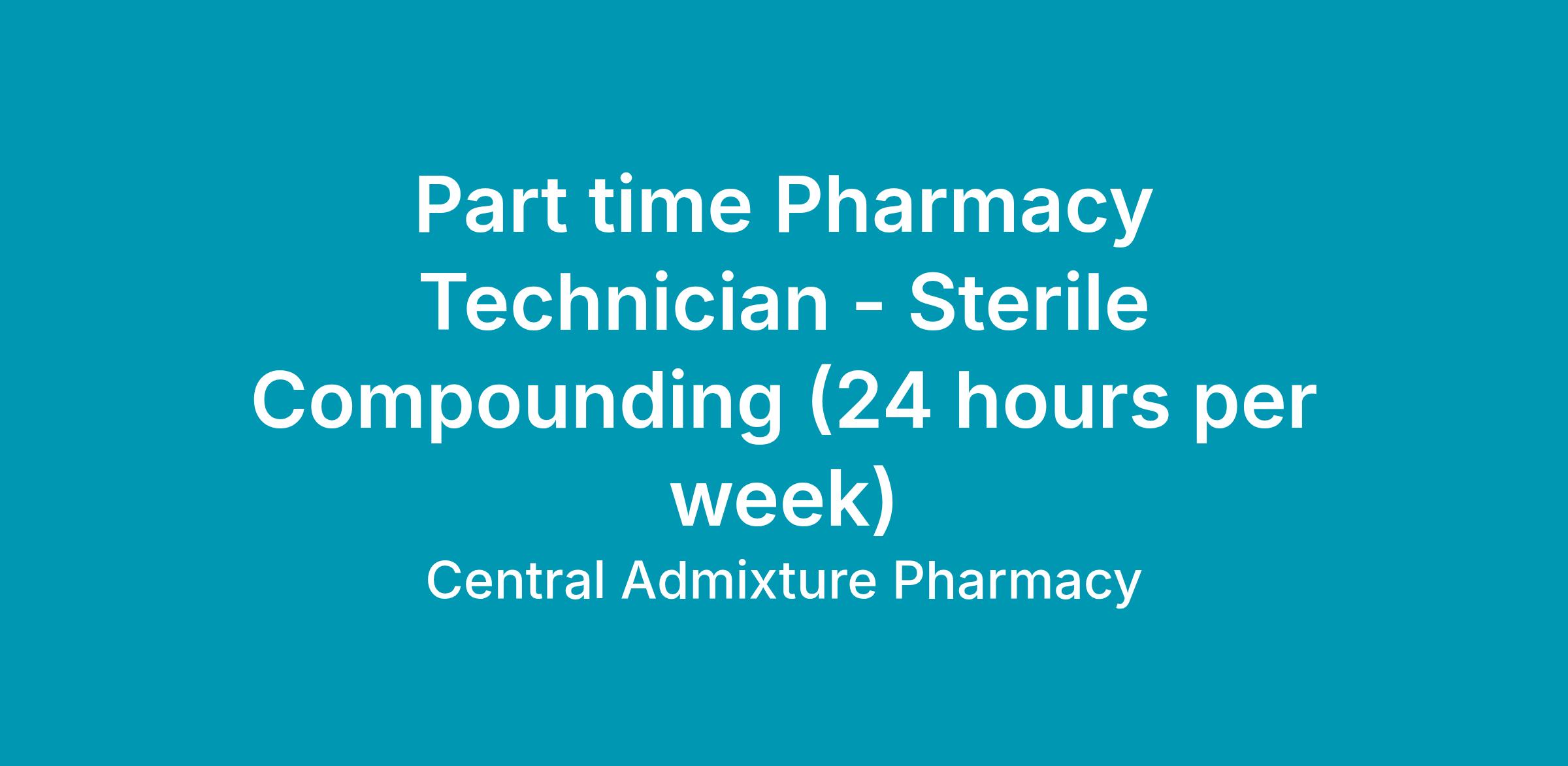 Part time Pharmacy Technician - Sterile Compounding (24 hours per week)