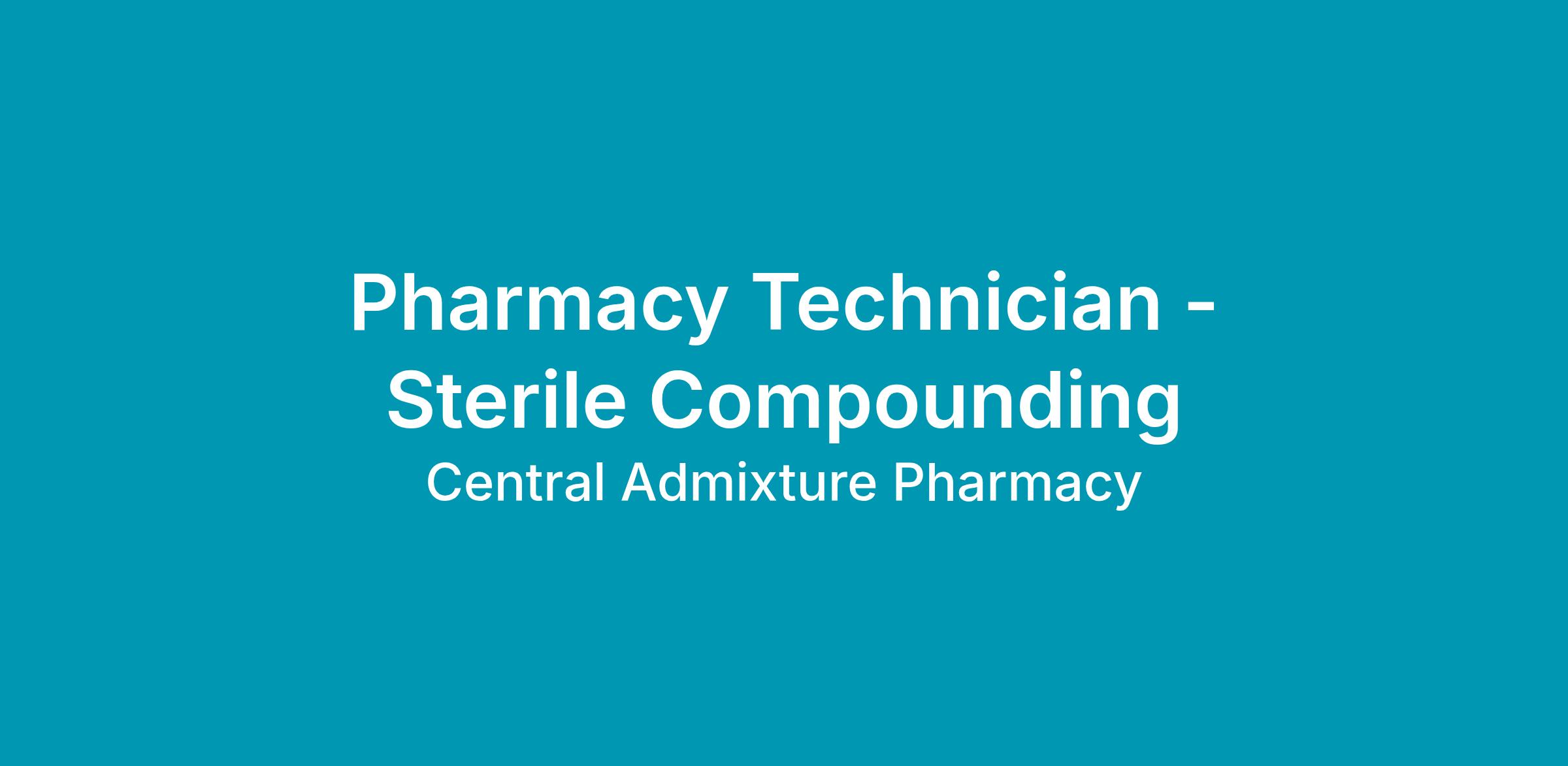 Pharmacy Technician prepares compounded sterile products and performs related activities under the direction of a pharmacist.