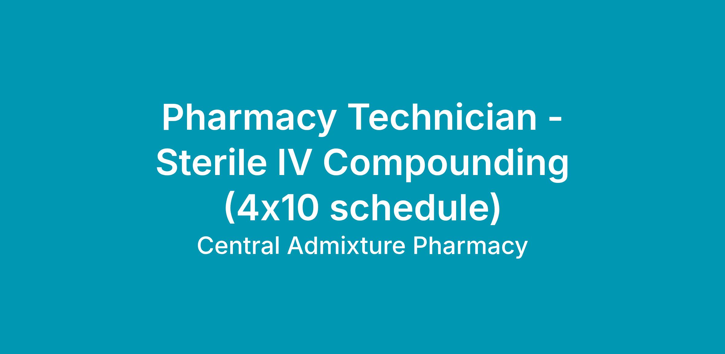 Pharmacy Technician prepares compounded sterile products and performs related activities under the direction of a pharmacist.