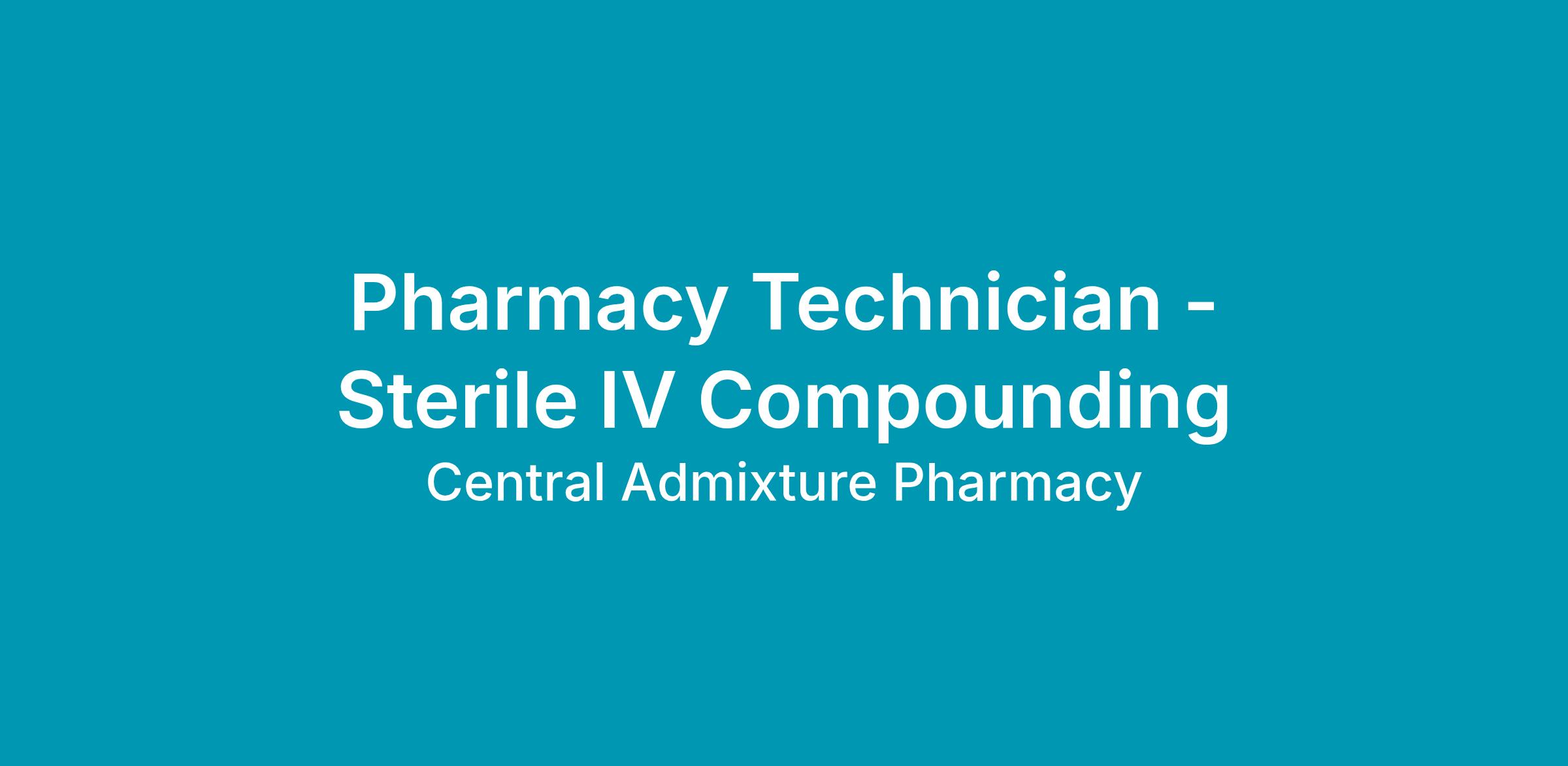 Pharmacy Technician prepares compounded sterile products and performs related activities under the direction of a pharmacist.