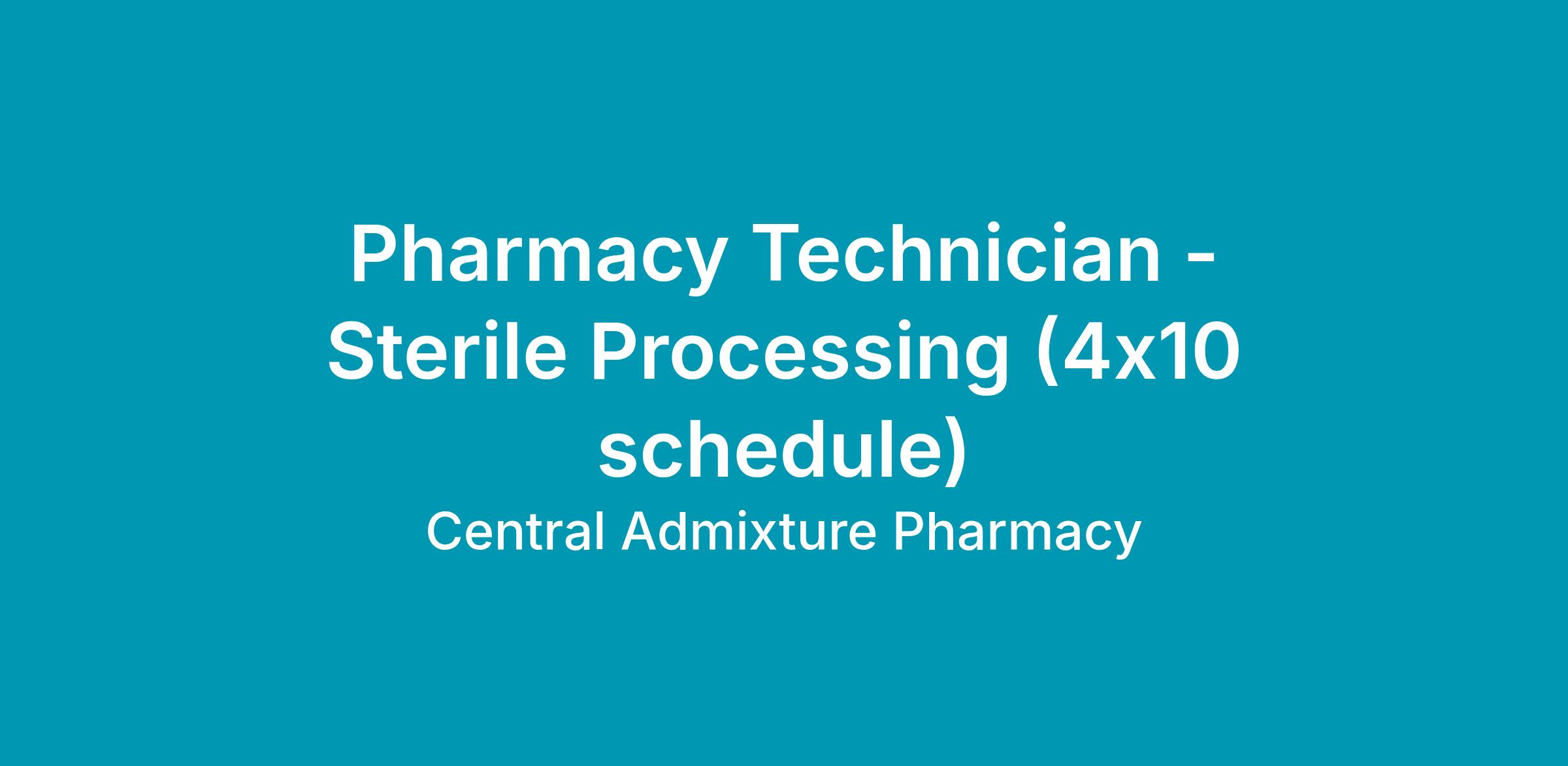 Pharmacy Technician prepares compounded sterile products and performs related activities under the direction of a pharmacist.