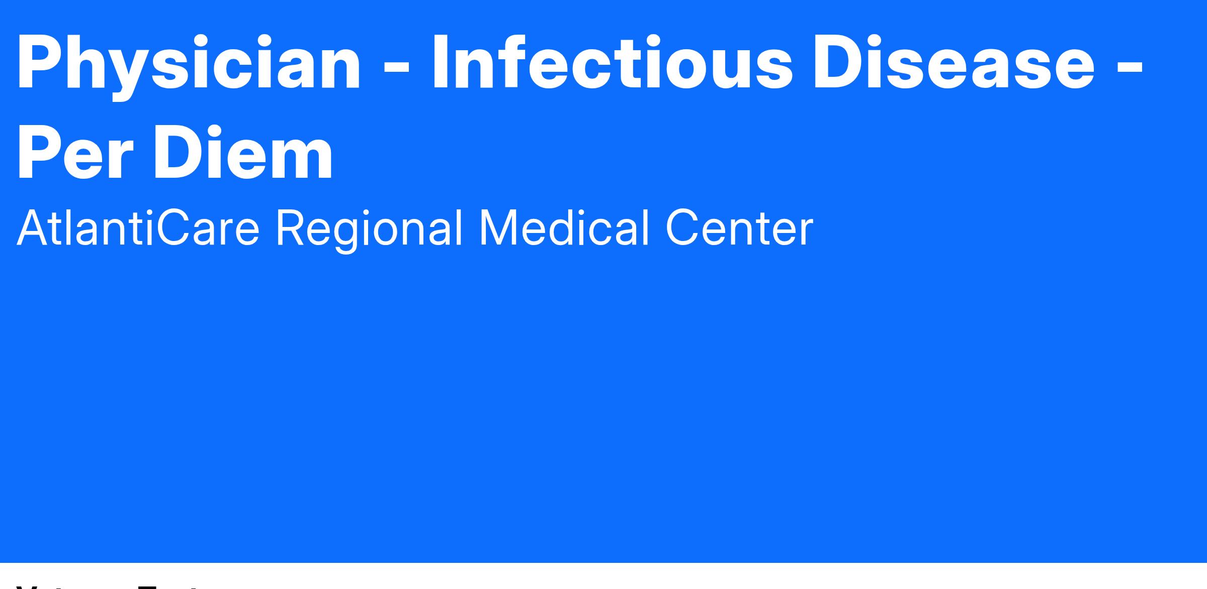 Seeking a Board Certified/Board Eligible Infectious Disease physician to work 4 hours a week but can offer one full day (8 hours) if preferred. This is an in-person opportunity located in Atlantic City, NJ.