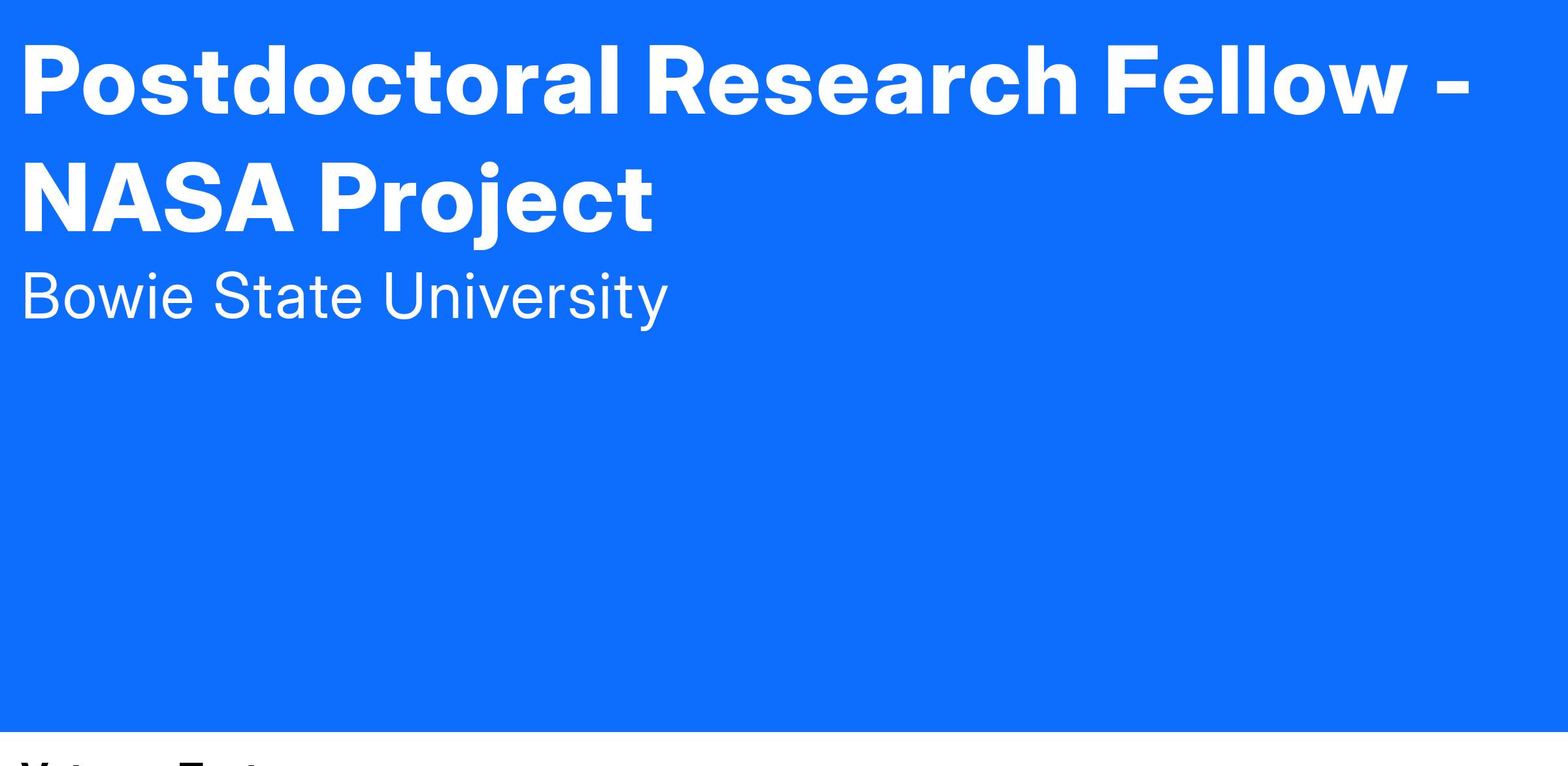 PURPOSE: Post-Doctoral Research Fellow will support a NASA funded hydroponics and aquaponics project with emphasis on microbiome research in the Bowie State University Genomics, Conservation and Crop Improvement laboratory. The selected candidate will also participate in Banana and Plantains Genomics research and will provide needed support for the Course-based Undergraduate Research Experience (CURE) program.