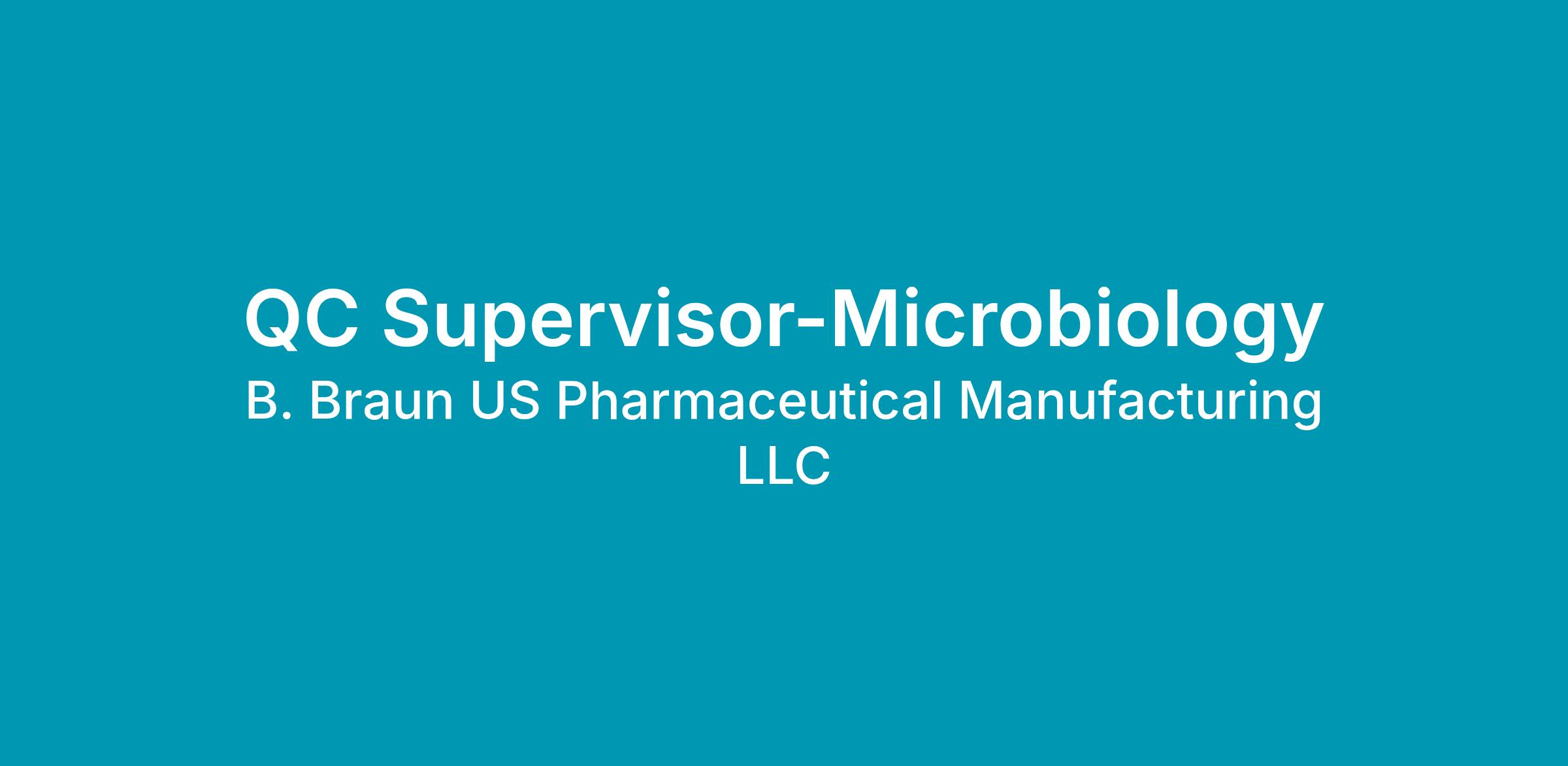 Supervises the activities for the B. Braun Microbiological Laboratory. Responsible for proper oversight and development of Product Quality Control, Bioburden, Environmental Monitoring and Sterility Assurance Programs. Operates in accordance with company policies and procedures and FDA Regulations.