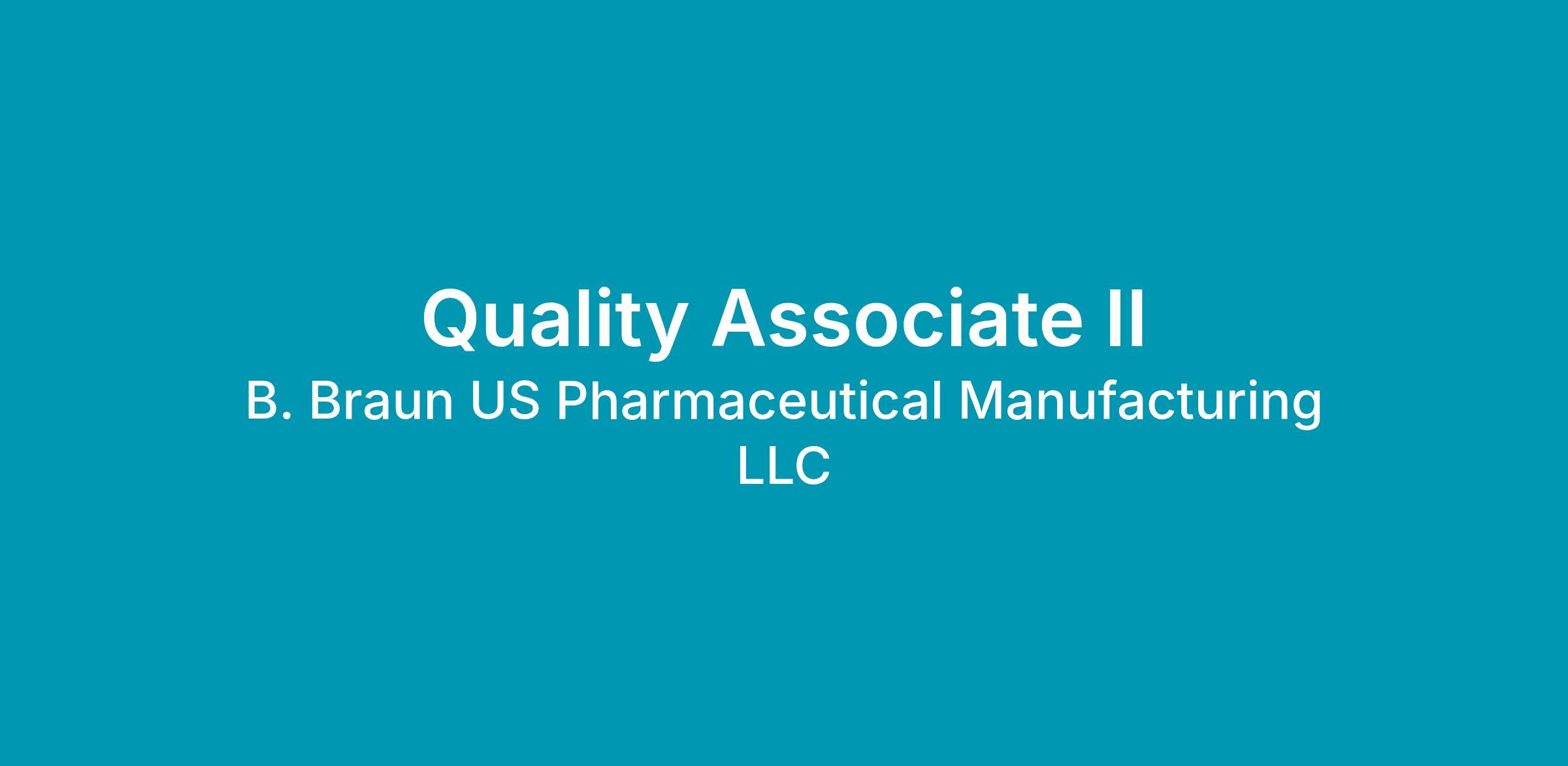 B. Braun offers an excellent benefits package, which includes healthcare, a 401(k) plan, and tuition reimbursement. To learn more about B. Braun and our safety healthcare products or view a listing of our employment opportunities, please visit us on the internet at www.bbraunusa.com.