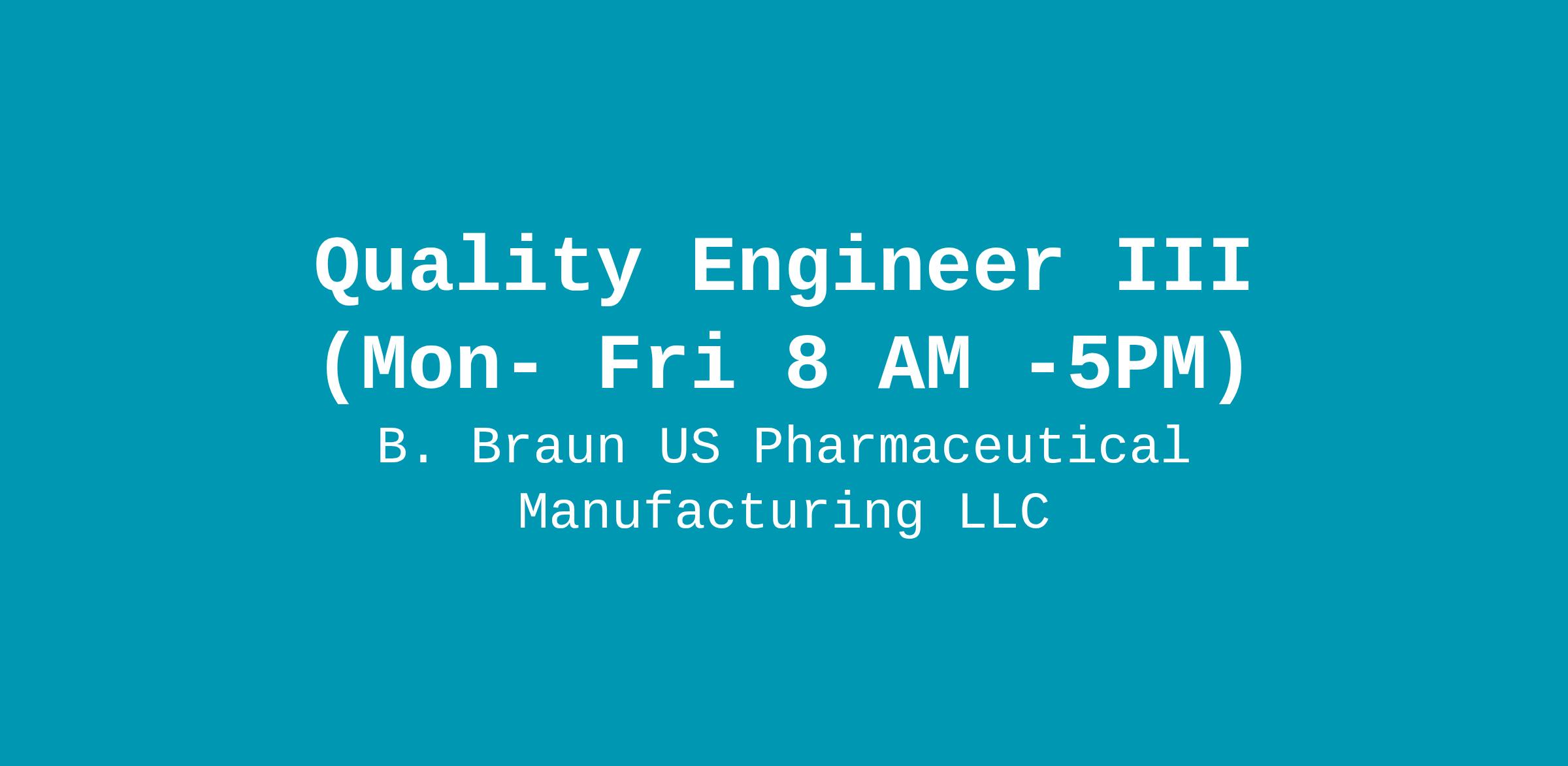 The Quality Engineer III will provide technical Line Support to ensure product quality is built into processes. Primary focus will be to maintain the Quality System and provide support for process improvements to prevent discrepancies from occurring. Other duties include reviews and approves documentation such as protocols, reports, specifications, maintenance work orders and other documentation.
