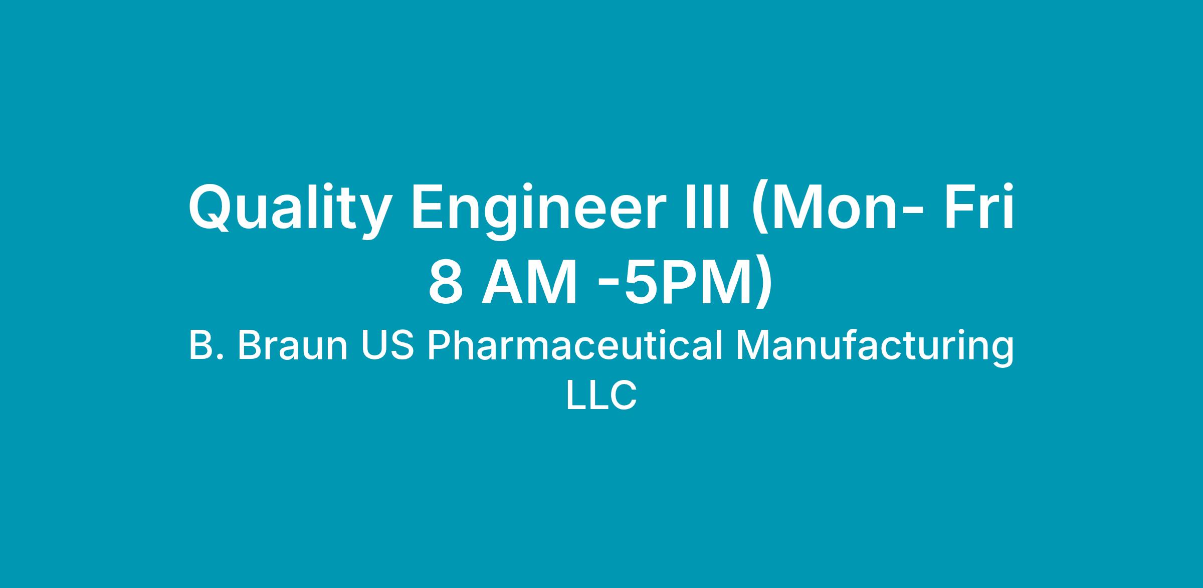 The Quality Engineer III will provide technical Line Support to ensure product quality is built into processes. Primary focus will be to maintain the Quality System and provide support for process improvements to prevent discrepancies from occurring. Other duties include reviews and approves documentation such as protocols, reports, specifications, maintenance work orders and other documentation.