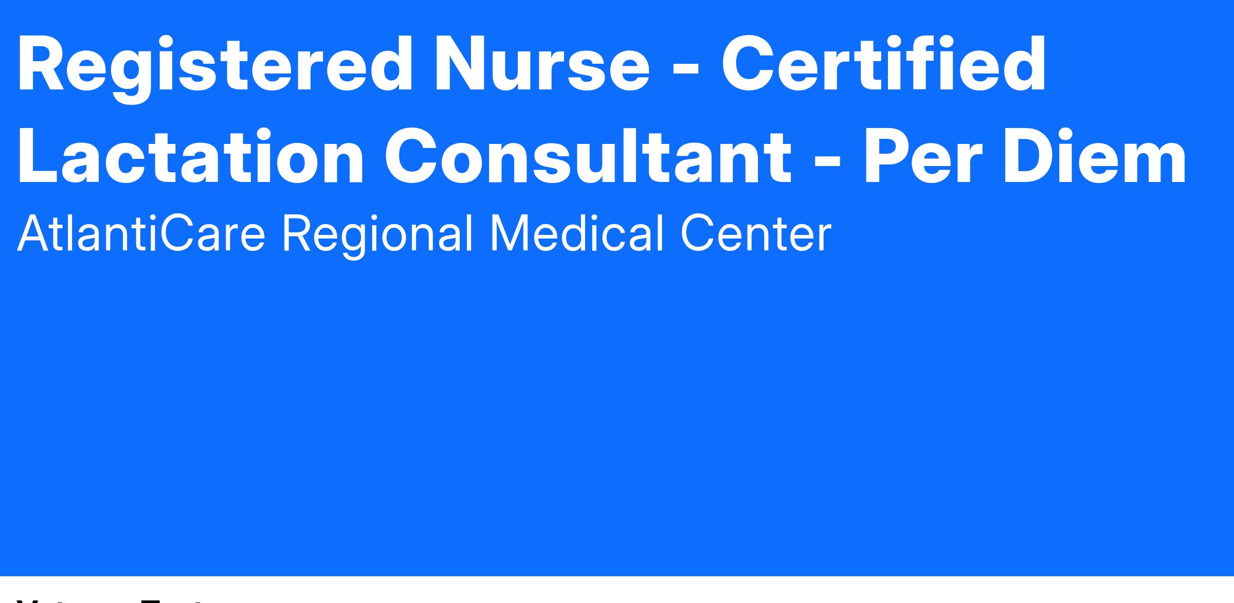 Description POSITION SUMMARY The IBCLC certified Registered Nurse is a member of the interdisciplinary team working in collaboration with the Physician. The Registered Nurse utilizes the nursing care process consistent with their license and/or certification including initiation of culturally competent continuum of care including inpatient, outpatient and community settings. The Registered Nurse is responsible to oversee any necessary coordination of the interdisciplinary plan of care and provides for its consistency with the medical treatment plan. The patient care process includes: