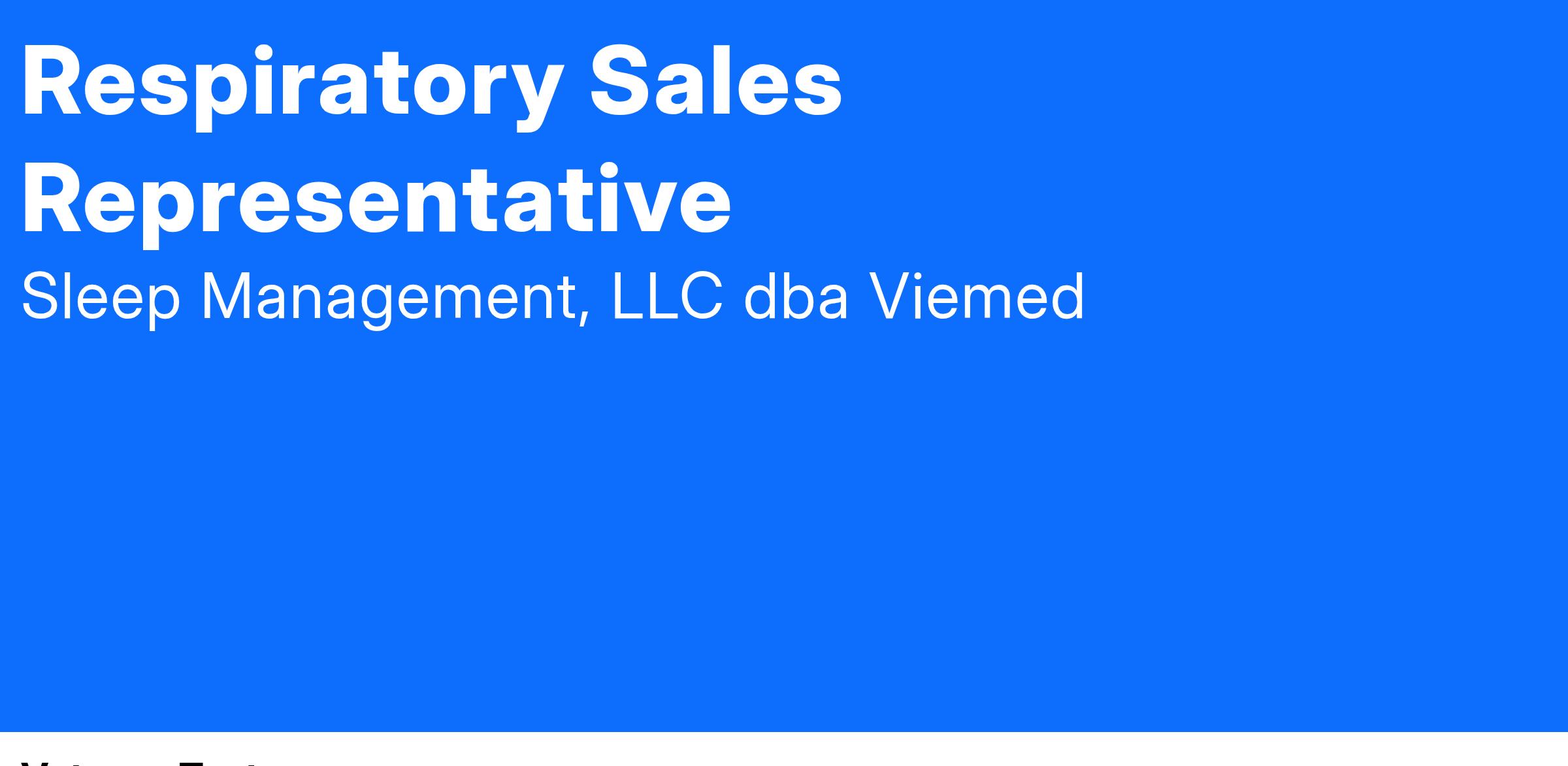 Sleep Management, LLC dba ViemedRespiratory Sales RepresentativeJob Category: Sales