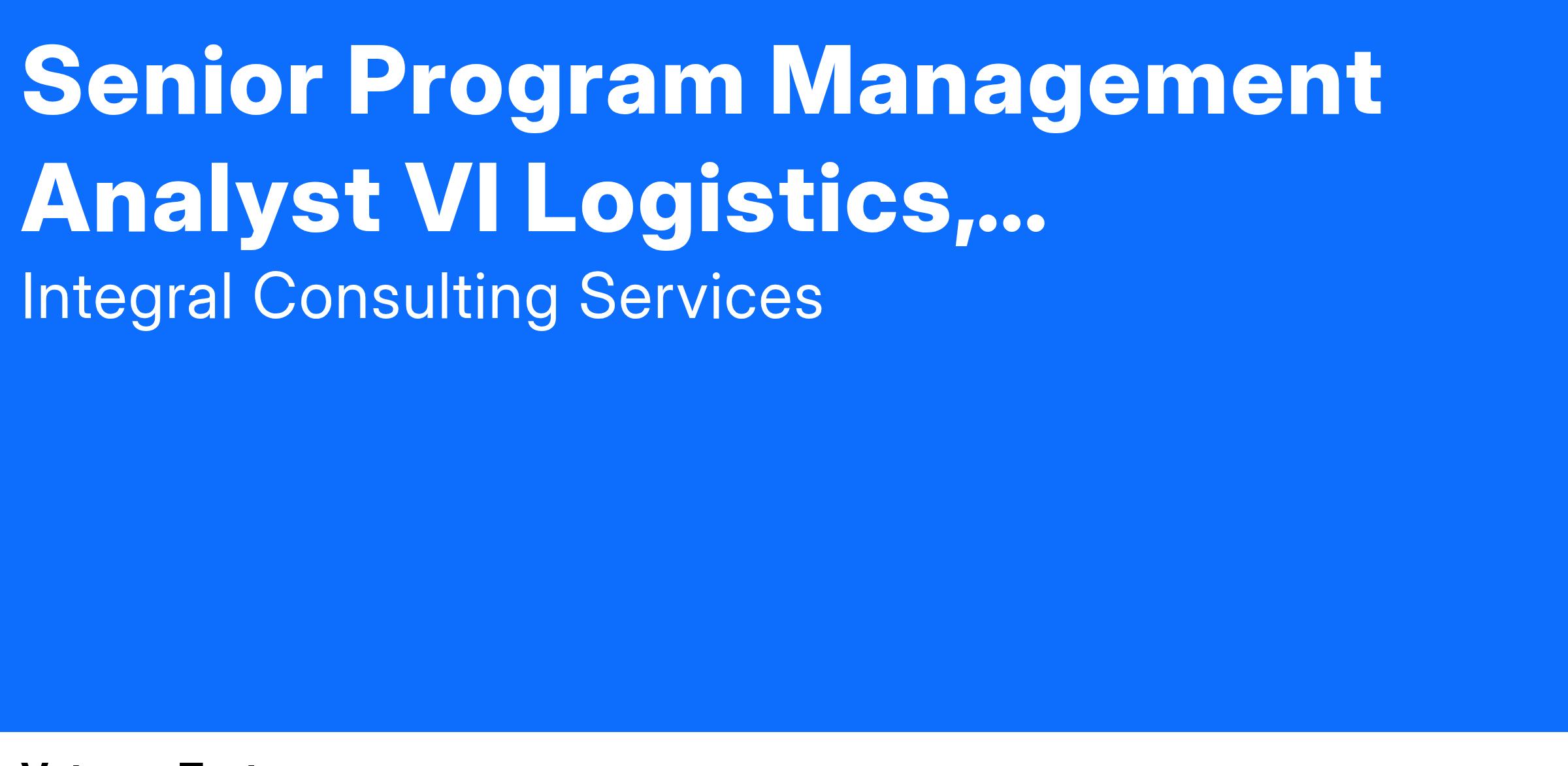Position Title: Senior Program Management Analyst VI Logistics, Acquisition, and Strategic Planning