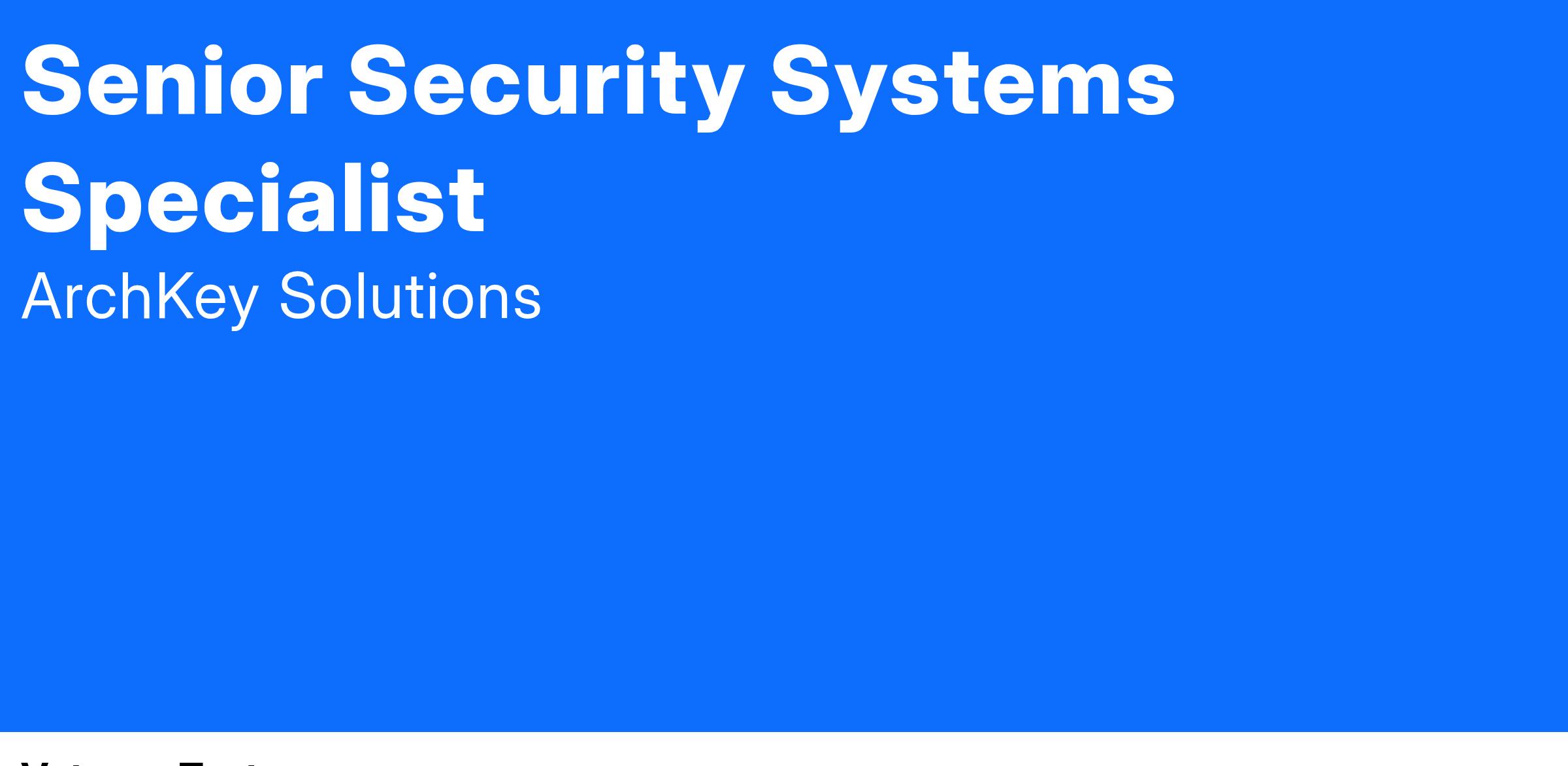 ArchKey SolutionsPosition Title: Senior Security Systems Specialist