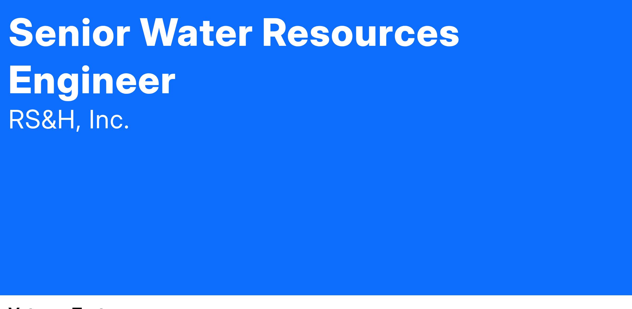 RS&H, Inc.Senior Water Resources EngineerUS-SC-Charleston