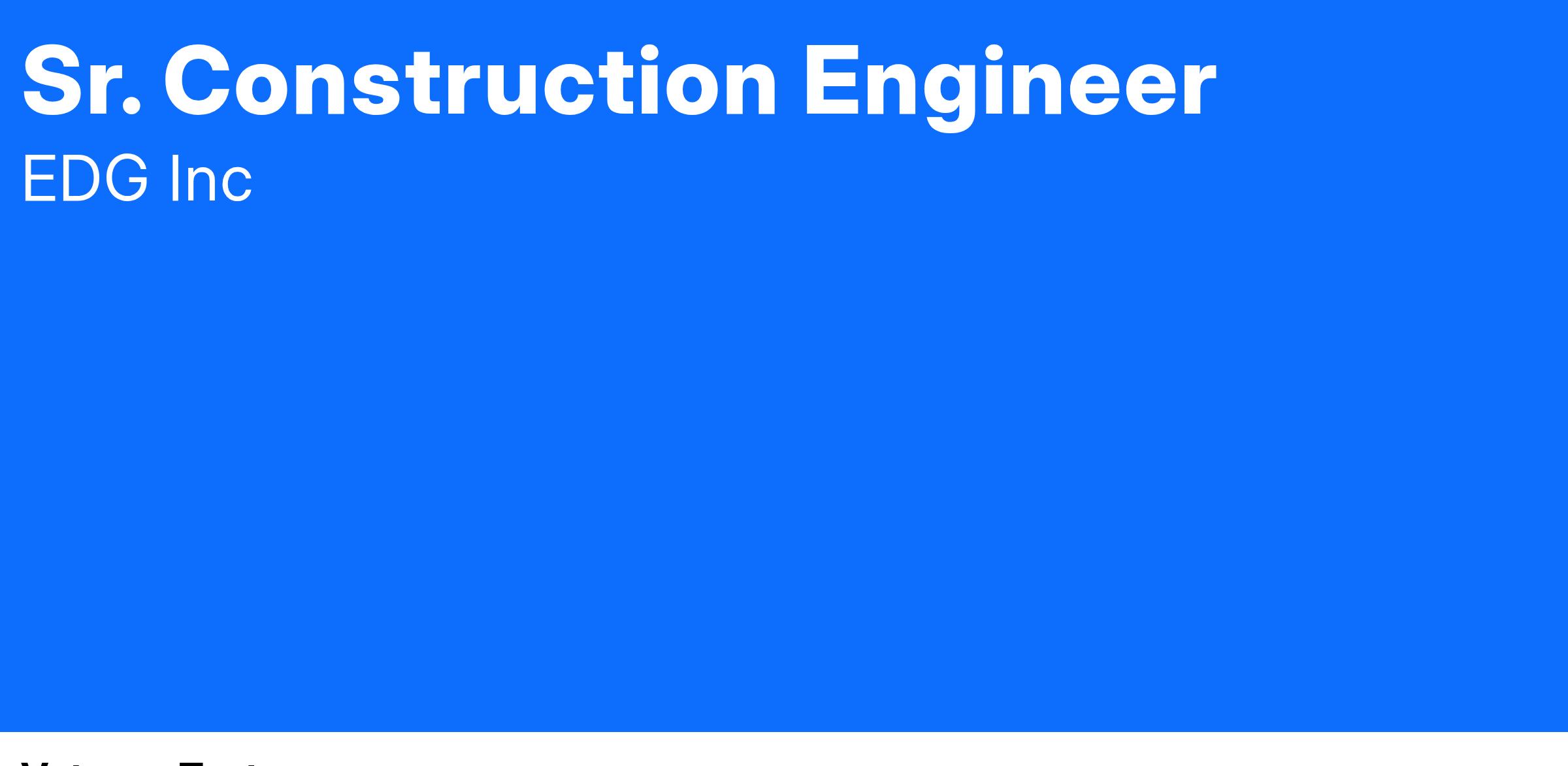 Drug Free Workplace:EDG Inc. and its subsidiaries are committed to a drug freeworkplace. Applicants are subject topre-employment urine drug screens.