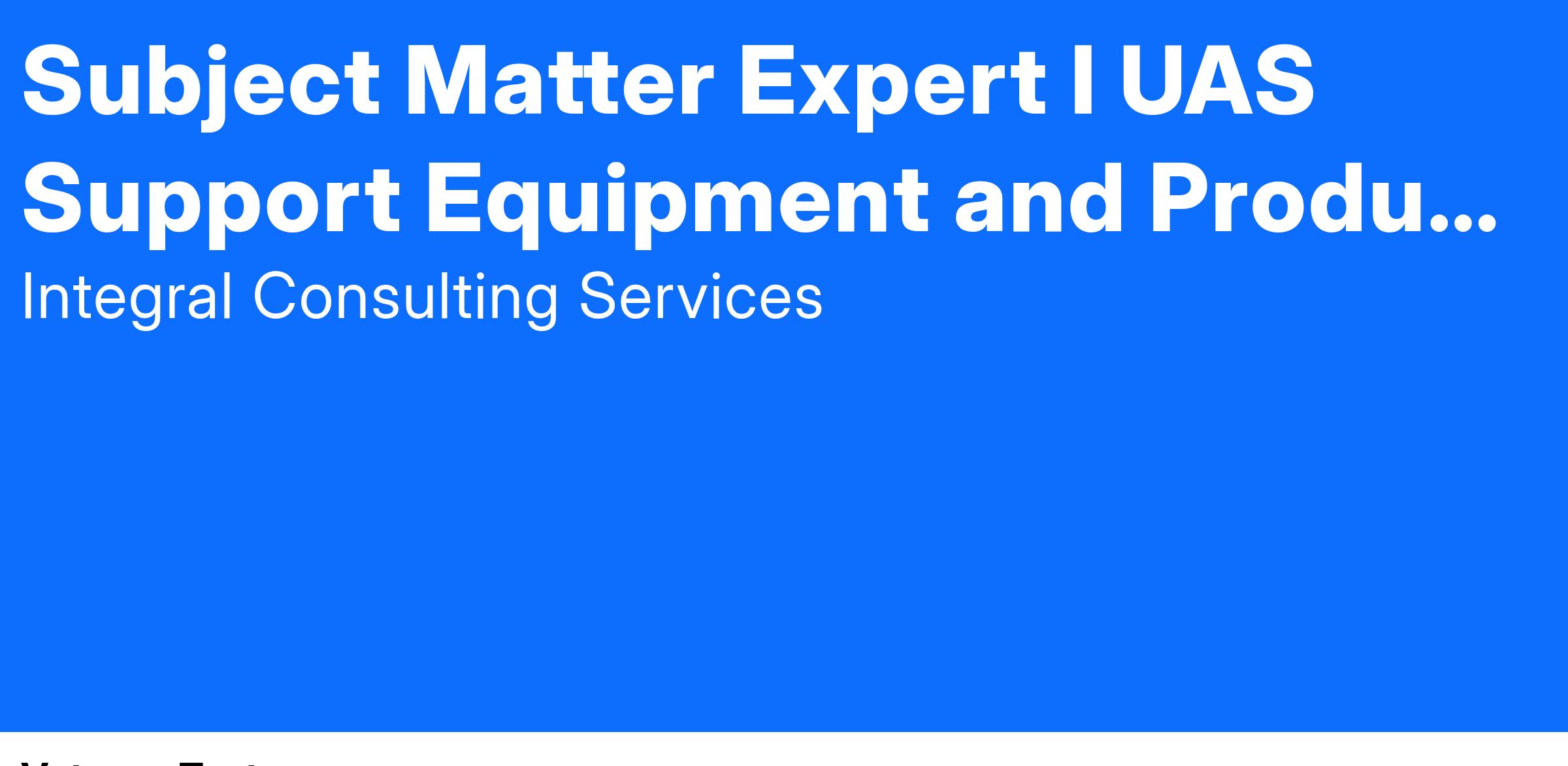 Position Title: Subject Matter Expert I UAS Support Equipment and Product Support Management