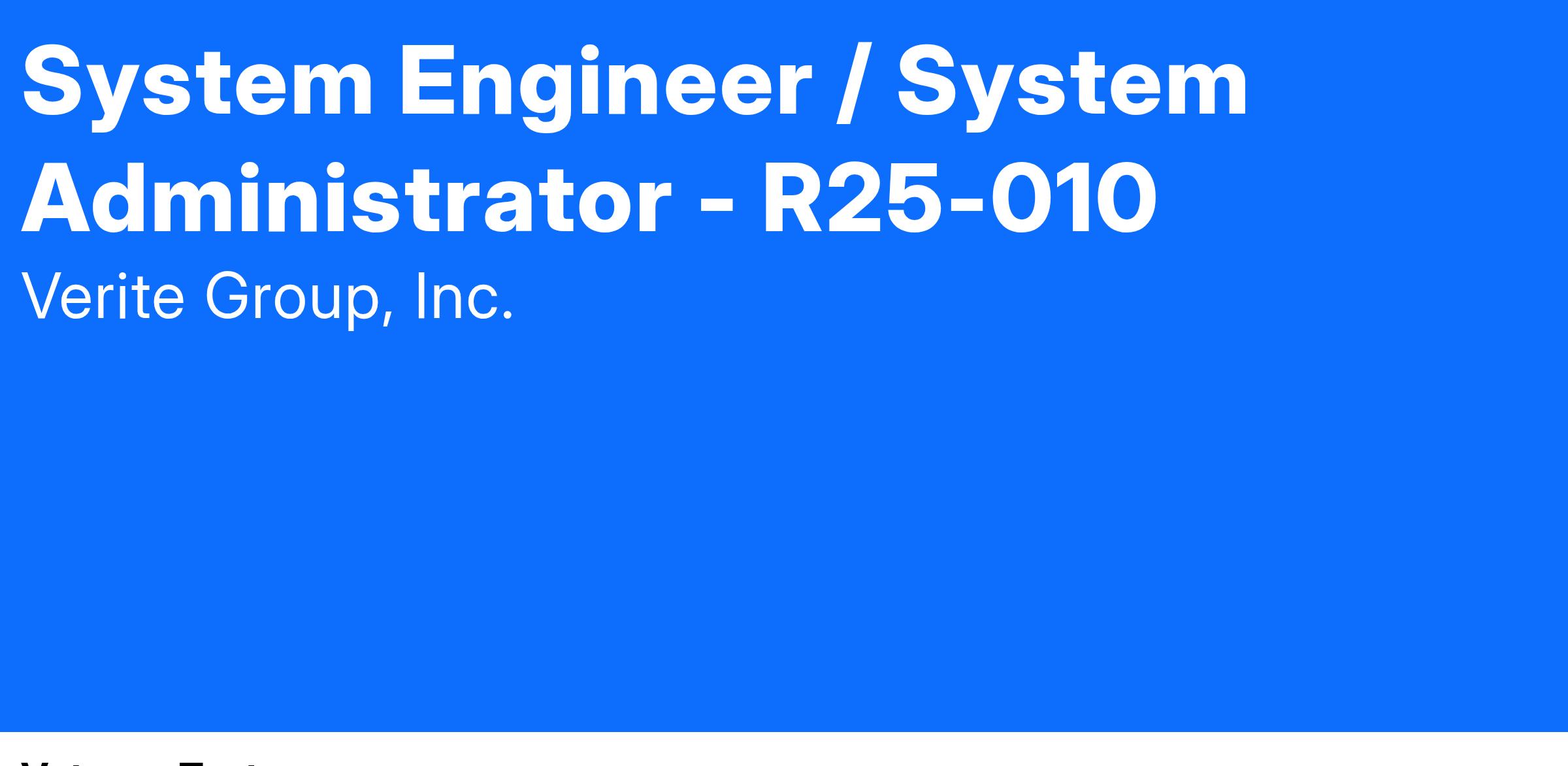 JOB TITLE: System Engineer / System Administrator - R25-010