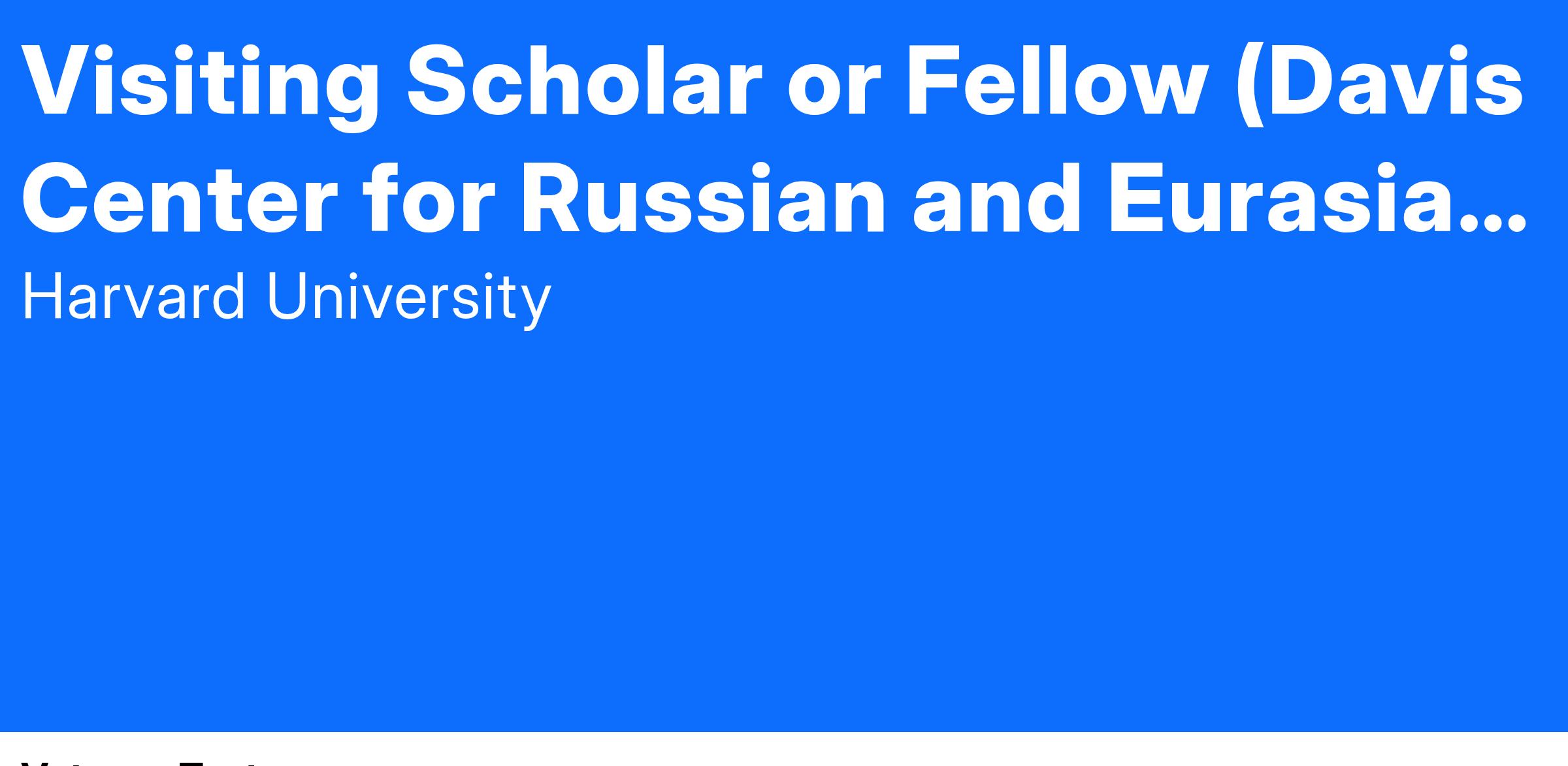 Harvard UniversityTitle: Visiting Scholar or Fellow (Davis Center for Russian and Eurasian Studies)