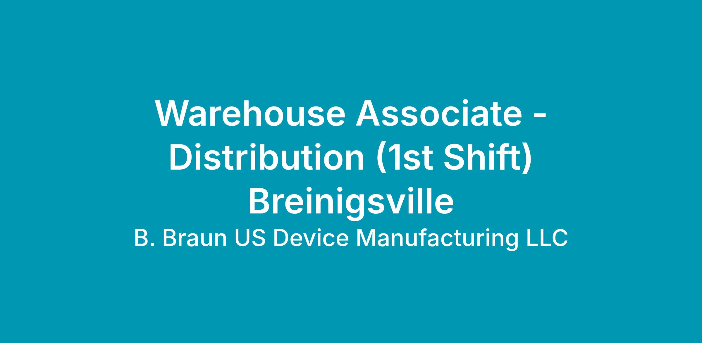 B. Braun offers an excellent benefits package, which includes healthcare, a 401(k) plan, and tuition reimbursement. To learn more about B. Braun and our safety healthcare products or view a listing of our employment opportunities, please visit us on the internet at www.bbraunusa.com.