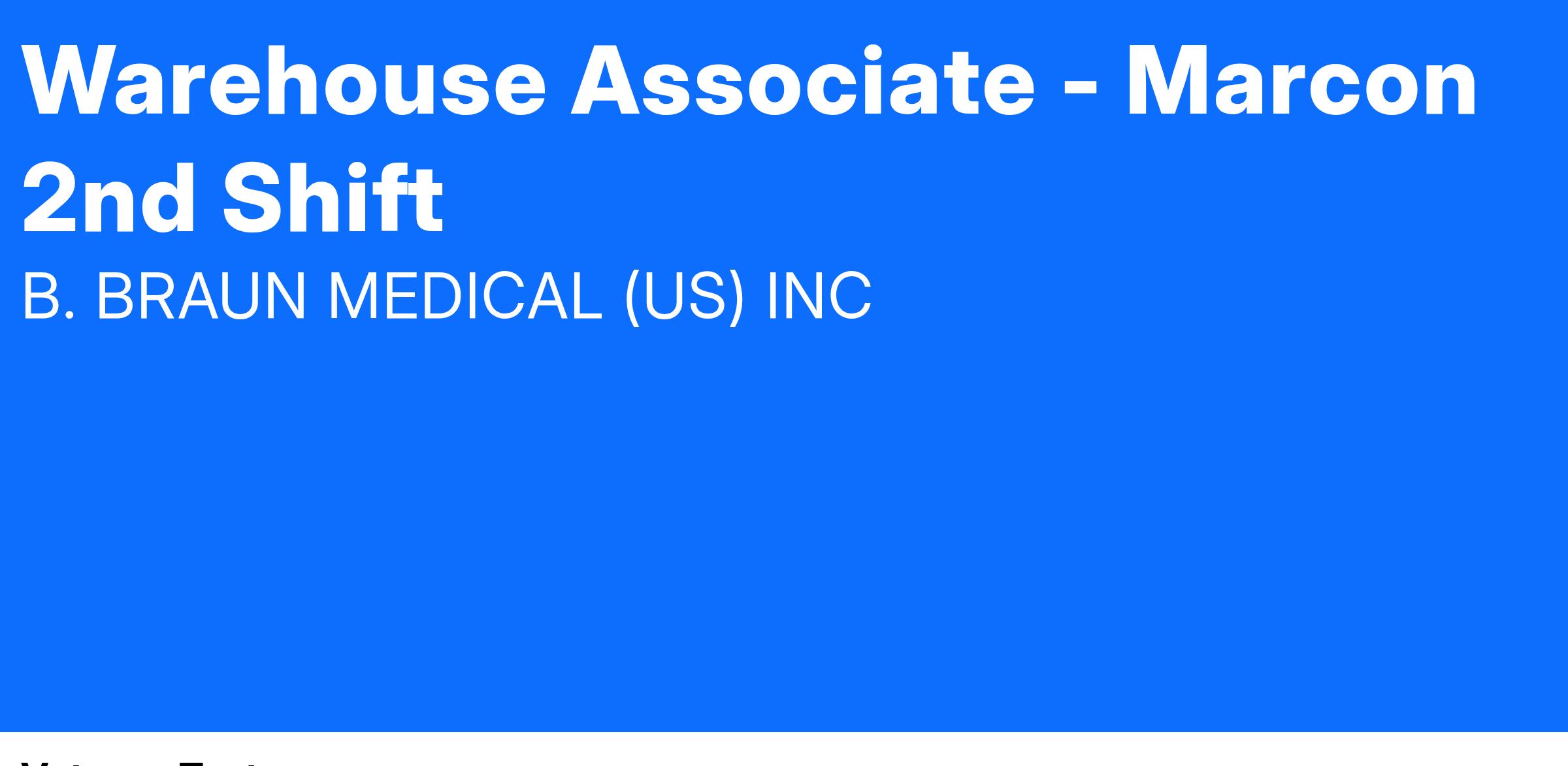 B. Braun offers an excellent benefits package, which includes healthcare, a 401(k) plan, and tuition reimbursement. To learn more about B. Braun and our safety healthcare products or view a listing of our employment opportunities, please visit us on the internet at www.bbraunusa.com.